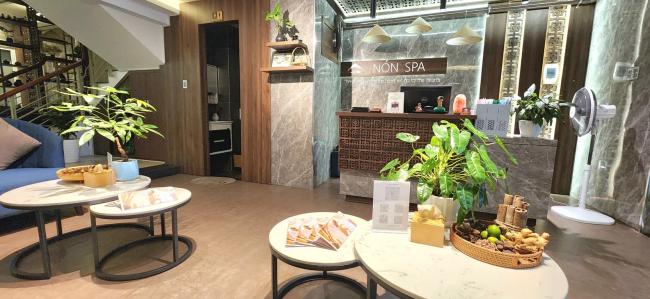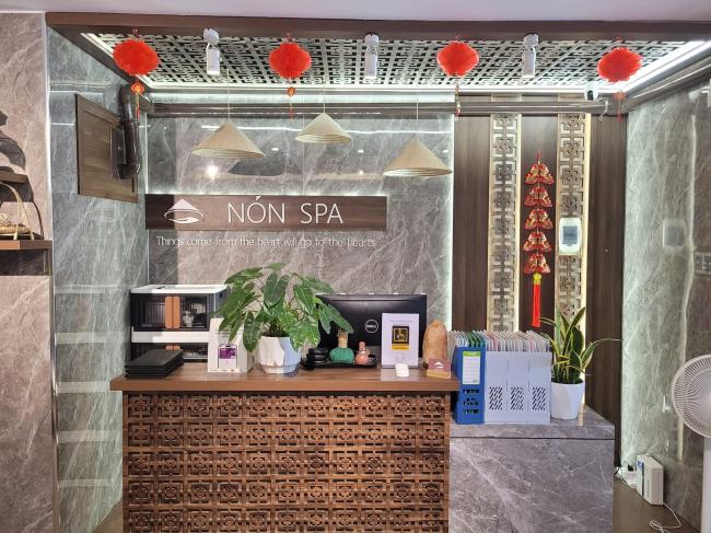The name and logo of "Nón Spa" were inspired by the Vietnamese conical hat ("Nón" or "Nón lá" in Vietnamese). From the image and use of the familiar hat in every Vietnamese family, we built "Nón Spa" with the desire to create a place where everyone can stay in the present, dispel the aches and pains on the body and relieve the stress of daily life, which is sometimes too rushed.
